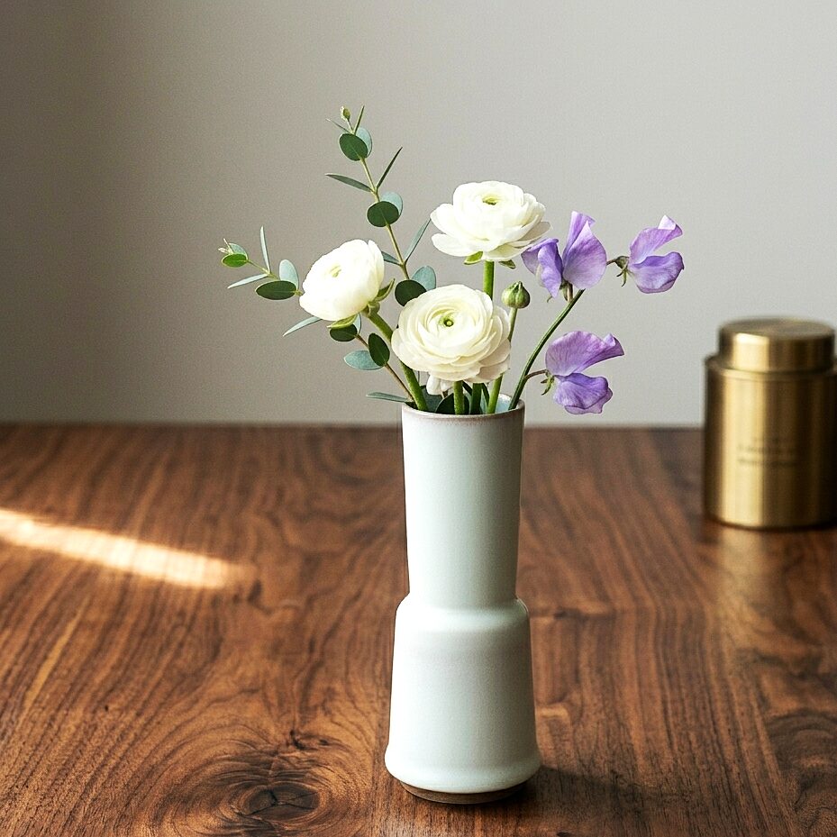 六代伊藤赤水のオリジナル釉「縹釉」で制作された花入れです