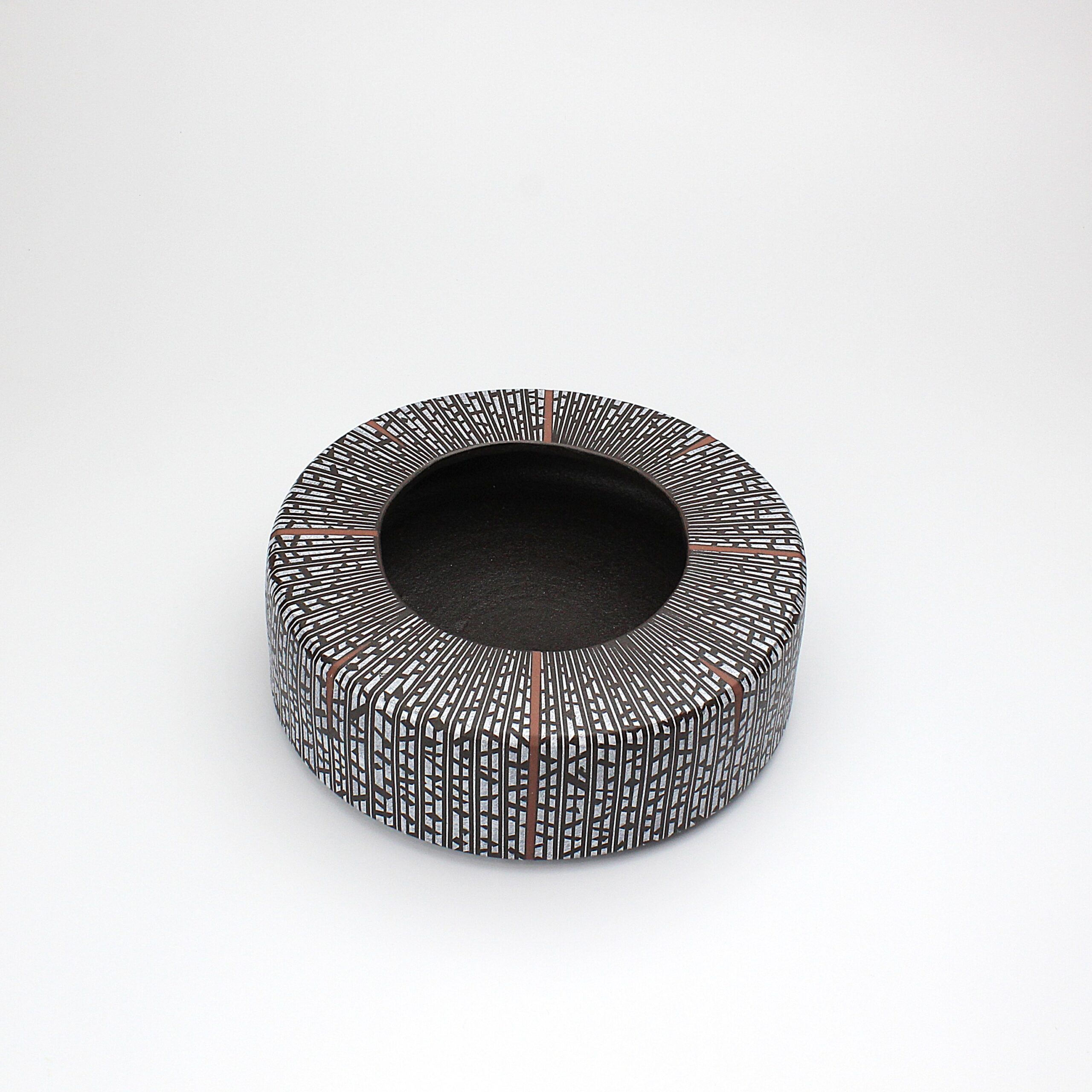 六代伊藤赤水の代表作「黒釉線紋」で制作された無名異線紋鉢です