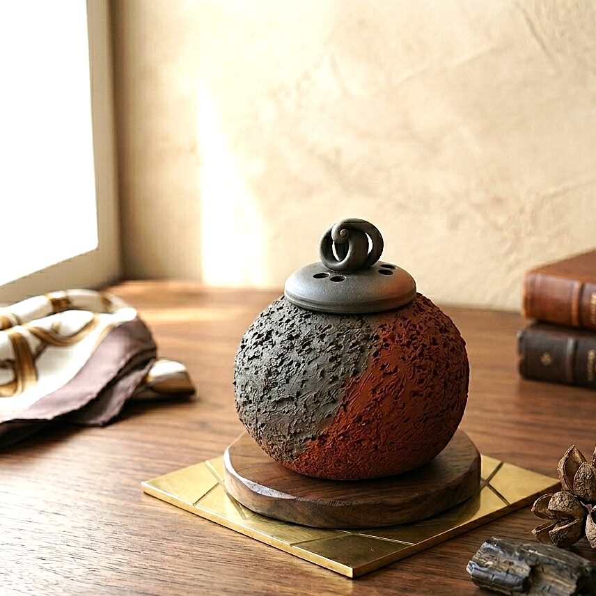 表面が荒々しい佐渡ヶ島シリーズの香爐は同じ紋様が2つとない作品です